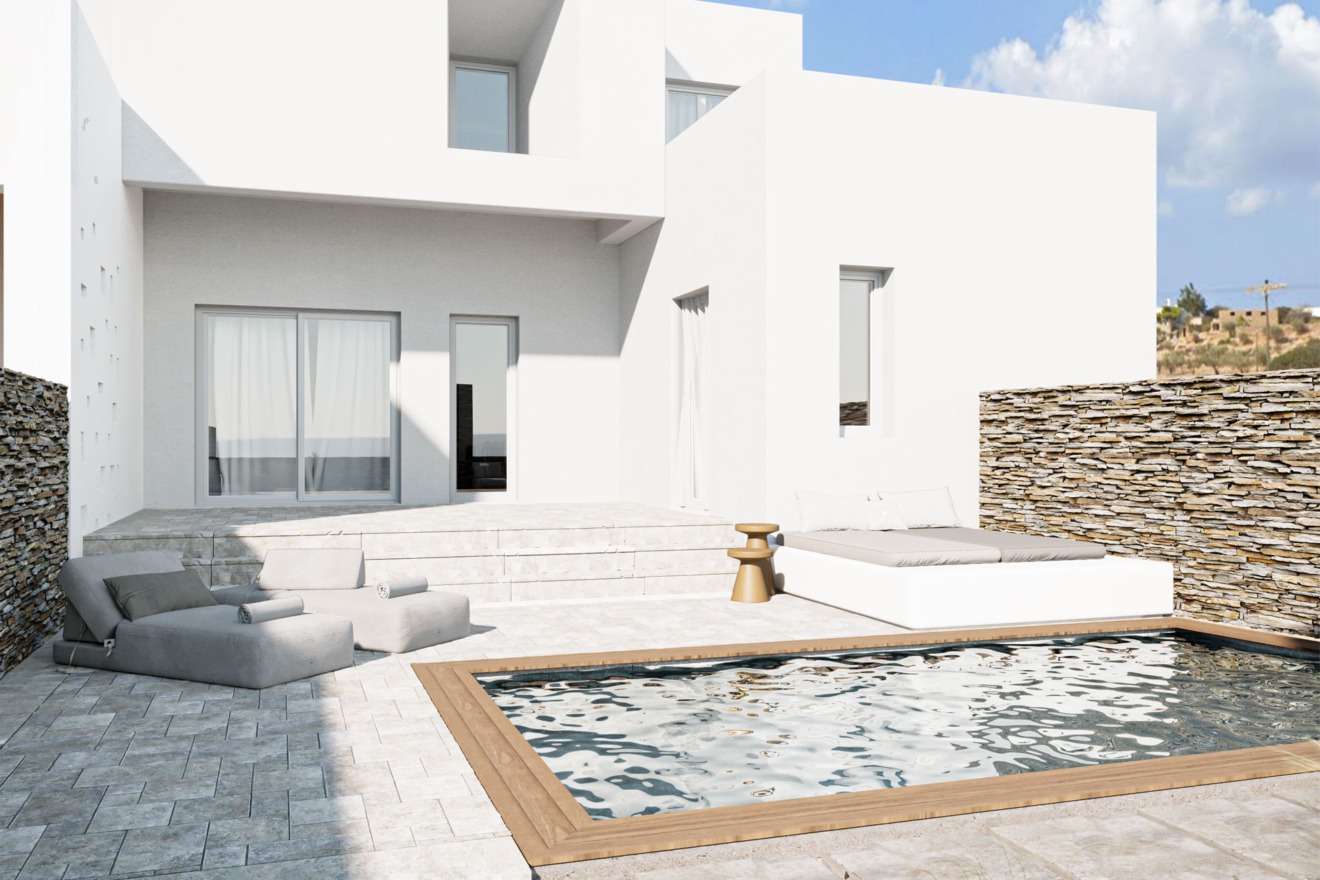 The plot lies only 2 min drive (1,9 km) from Alyki beach, 6 min drive (5 km) from Paros Airport and 12 min drive (13,3 km) from Paroikia Port.